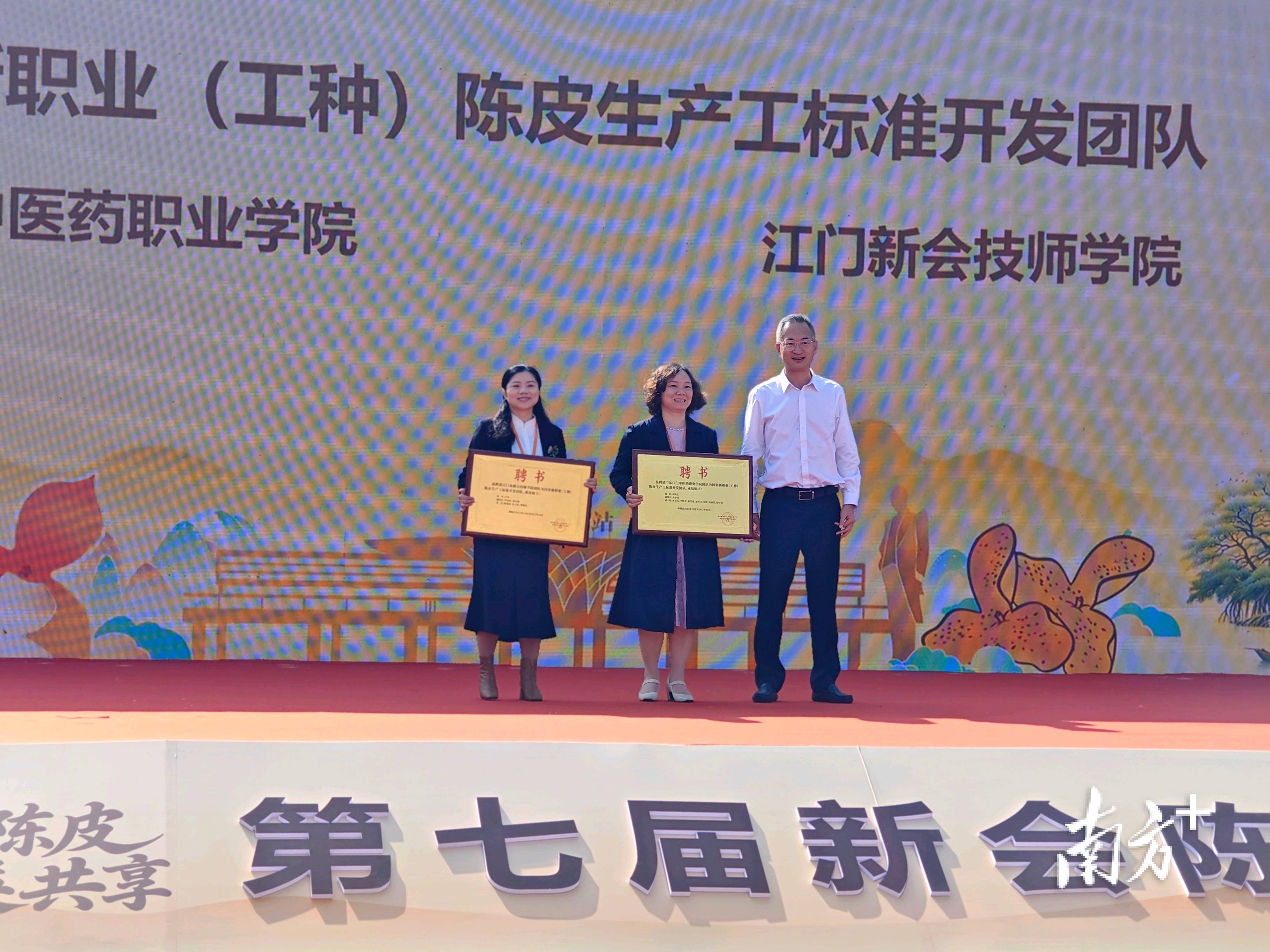 为夯实人才基本,现场向广东江门中医药职业学院、江门新会技师学院团队发表“邦度新职业(工种)陈皮坐褥工规范开垦团队”聘书。同时,“‘媒体+’新会陈皮物业观看站”正式筑造,将助力品牌散布与市集磋商。